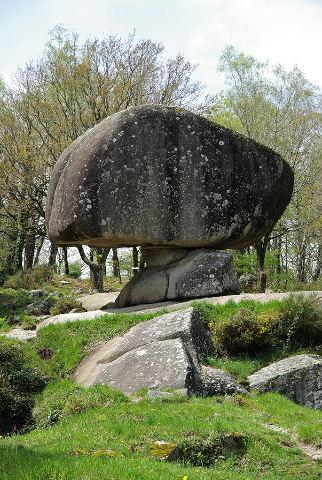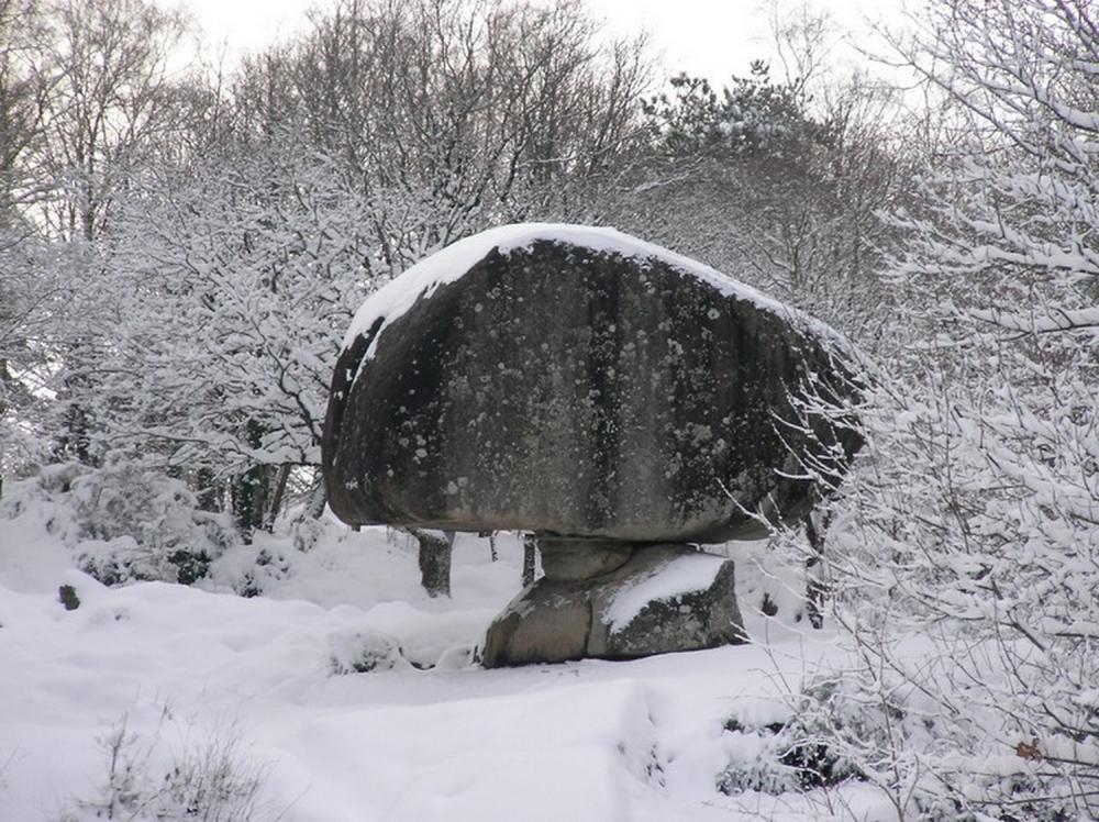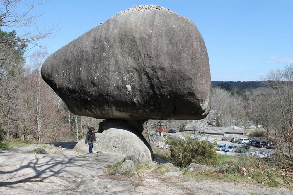 Sous la pierre se trouvent des cavités creusées par l’érosion, appelées marmites.