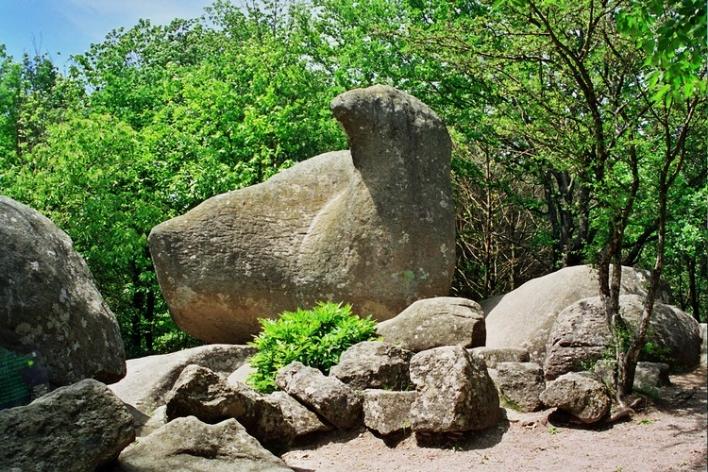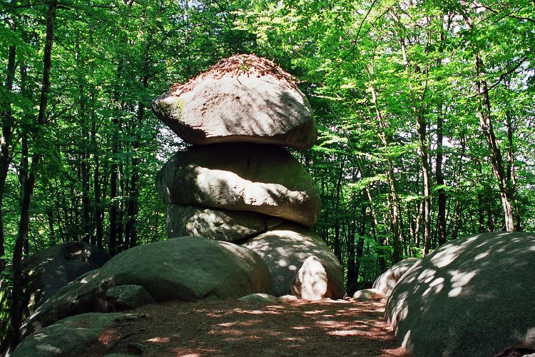 les 3 rochers empilés les uns sur les autres rappellent des fromages... sur un plateau de verdure.