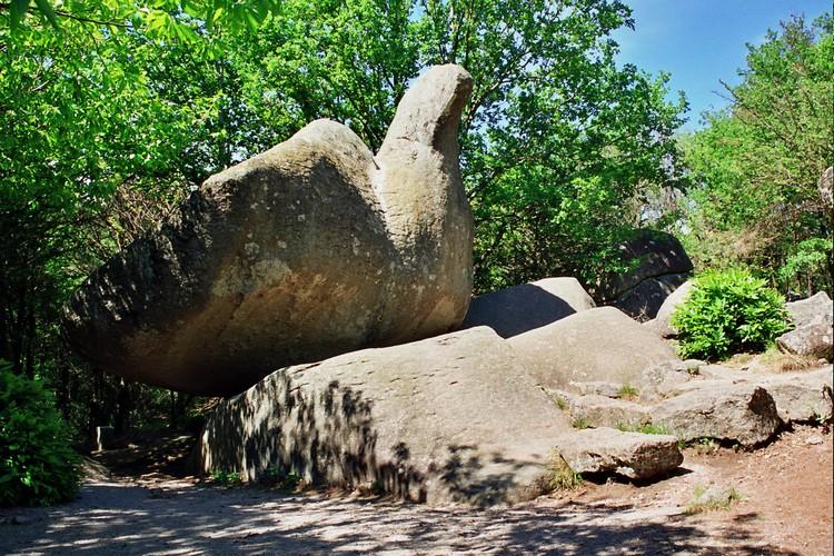 Située sur le Pic des Fourches (dont la croix des carriers en marque l’emplacement), cette pierre qui pèse environ 780 tonnes repose sur un socle d’un mètre carré. Une autre pierre en forme de cale façonnée par l'érosion entre le bloc et le socle assure l' équilibre de l'ensemble.