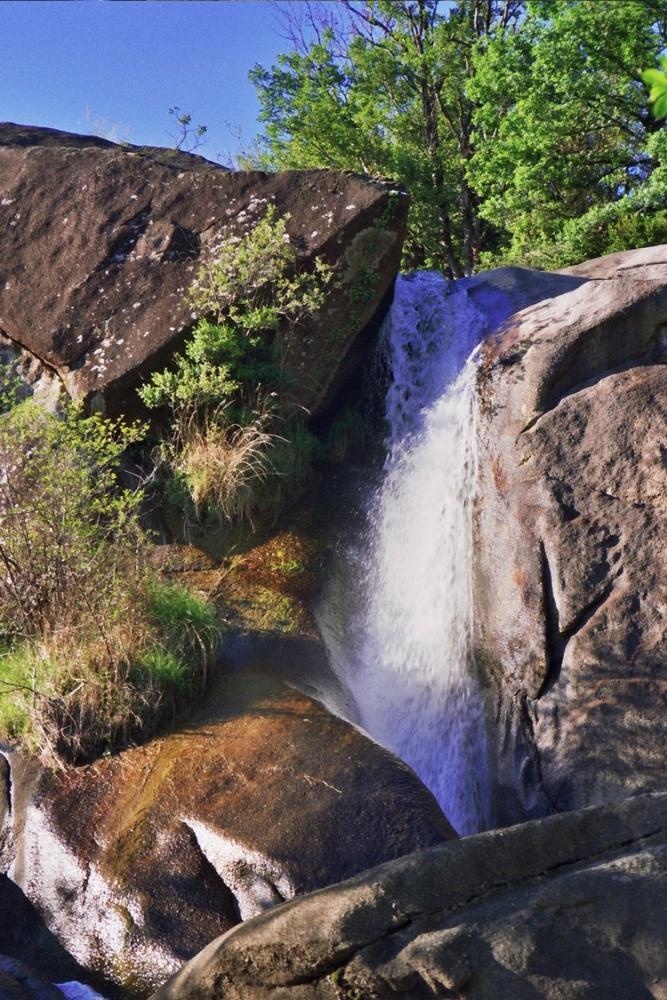 La légende veut que jadis, vivait là en ermite, un sorcier. Il tomba amoureux d'une truite. Mais quand vint la saison des amours, la truite fidèle à l'instinct de son espèce quitta le sorcier. Furieux, il lui jeta un sort et la figea sur place alors qu'elle bondissait par-dessus la cascade. Depuis ce jour, un gros bloc de granit gît en haut de cette cascade.